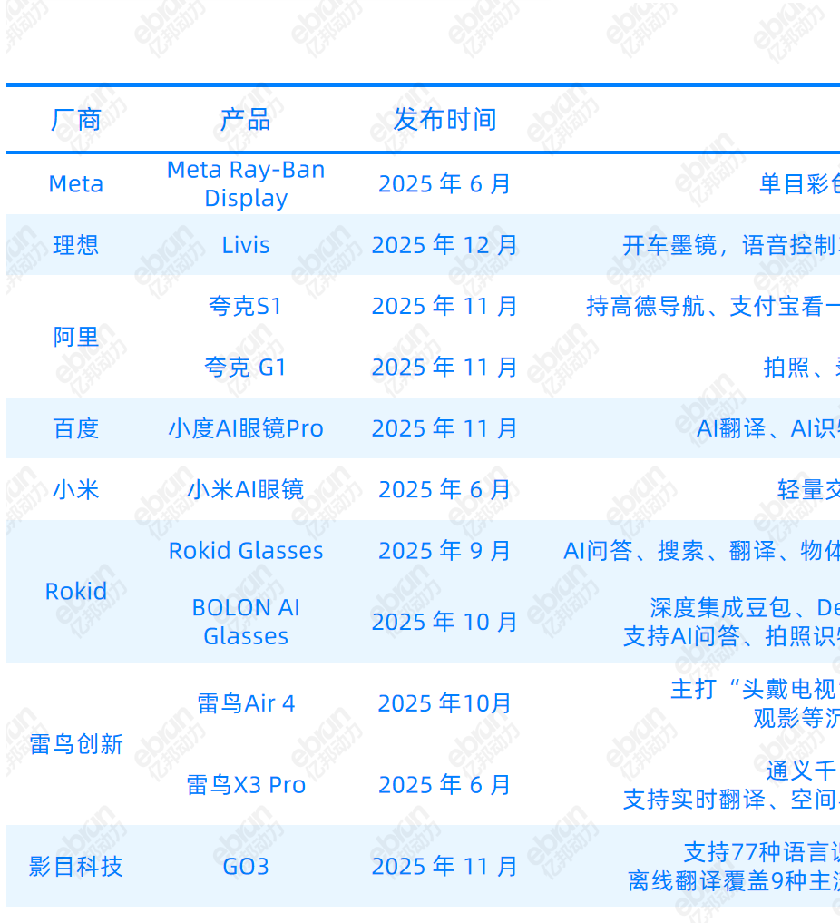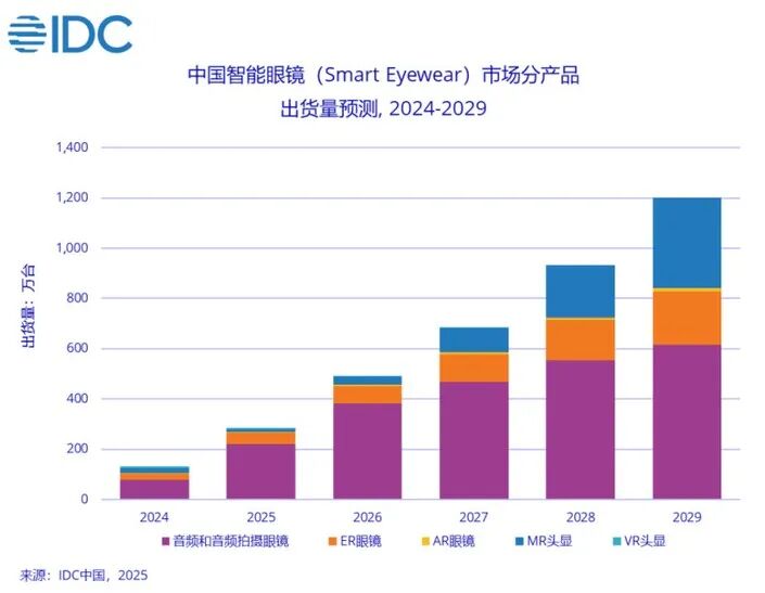 IDC 预计,2025 年全球智能眼镜市场出货量将达到 1451.8 万台,同比增长 42.5%;中国市场的增长更为迅猛,出货量预计达 290.7 万台,同比暴涨 121.1%。618 期间,京东平台AI眼镜成交量同比增长 7 倍;“双 11”,天猫平台智能眼镜品类成交额更是实现了同比 2500% 的增长。