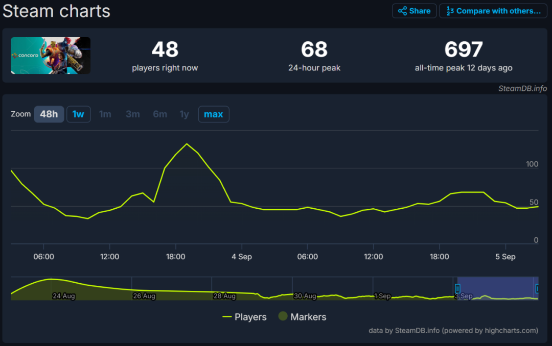但现实却给了索尼重重一击:2024 年 8 月,索尼开发长达八年、成本上亿美元的《星鸣特攻》上线不到两周就宣告关服,其正式版在 Steam 上在线人数峰值都不足 700 人,成为业界笑柄。