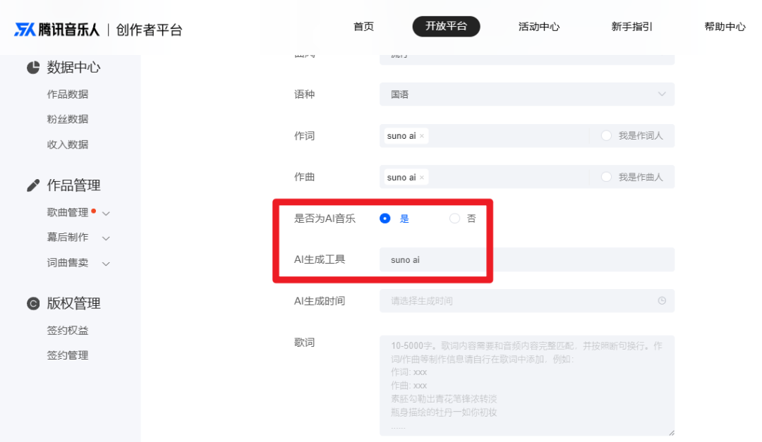 虽然平台均设有 AI 审核规则,但审核成本也随 Suno 们的进化而陡增,且“人类使用多少 AI 算 AI 作品”的界限日益模糊。“平台或许能阻止小白蒙混,但阻止不了音乐人深度使用 AI。”诺亚说。