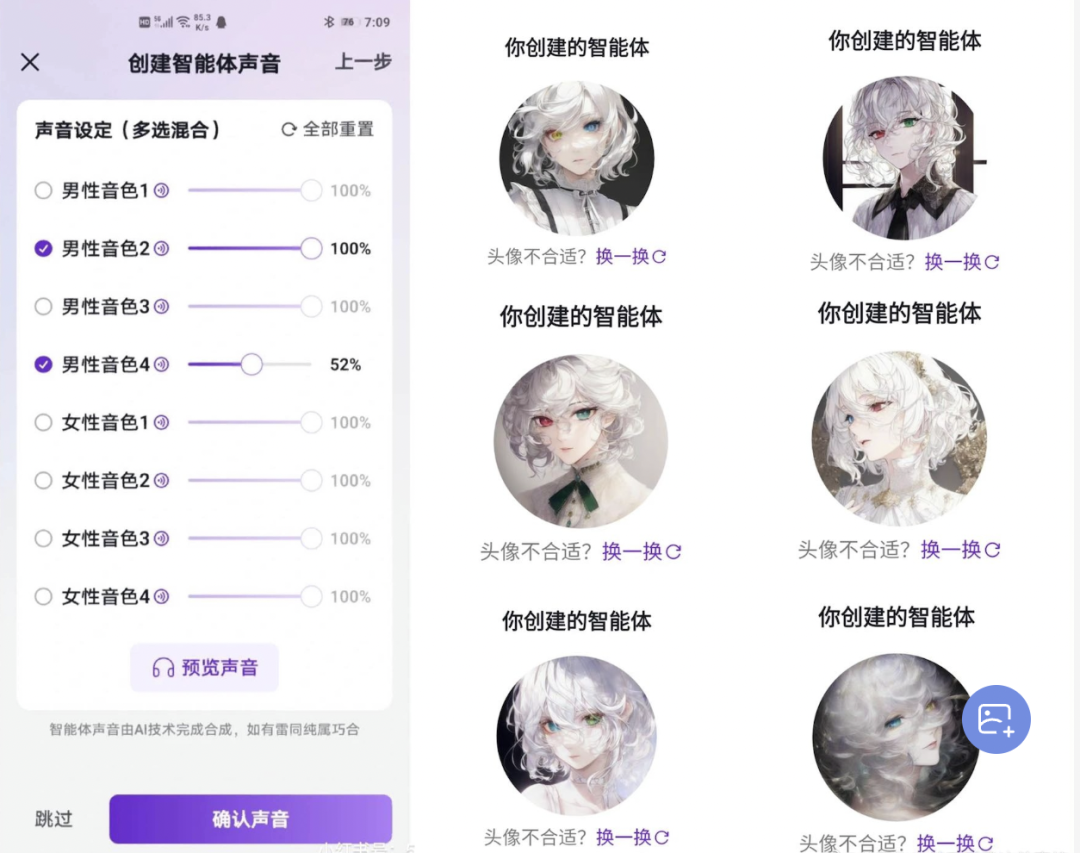 Glow 对于 MiniMax 的意义在于跑通了大模型和现实世界的交互。通过这个产品,大模型的能力通过具体的形式服务于用户。比如,用户可以通过语言描述,生成一张智能体的头像,这就是从 Text-visual 的图像生成能力;不同的智能体,拥有不同的音色和音质,这是 Text-audio 的语音生成。