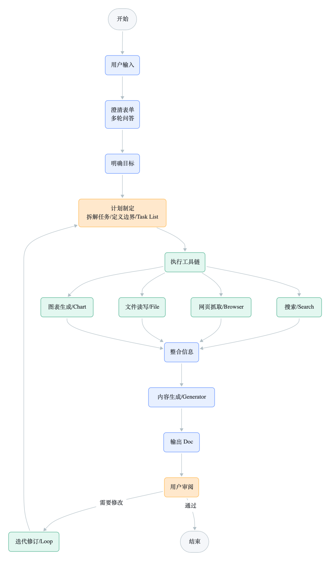 AnyGen 的高效运作依赖于一套精密编排的 Agent 协作机制。这种机制将模糊的自然语言需求转化为精确的执行指令,并通过多阶段流转来确保结果的准确性。在这一流程中,系统能够自动识别任务间的依赖关系。例如,在撰写舆情周报时,针对不同媒体渠道(微博、微信、外媒)的信息搜集任务可以同时启动,显著提升数据获取速度。