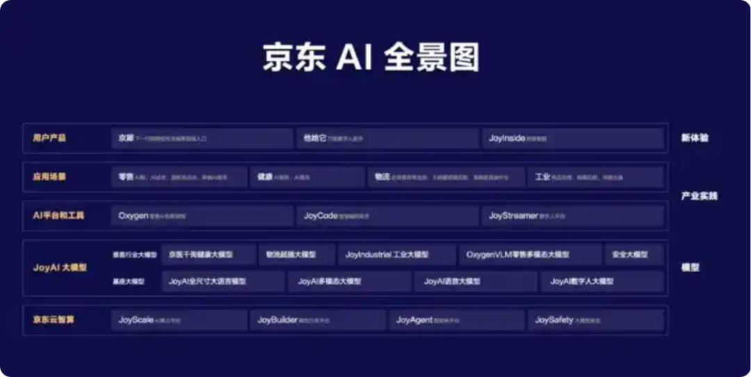 刘强东没有盲目跟风,而是制定了适合京东的战略定位,明确“不片面追求运动式 AI”,聚焦“供应链+零售+物流”的产业 AI,强调 AI 价值=算力×算法×数据×产业厚度,优先用 AI 解决履约、供应链、商家服务等确定性问题,而非烧钱做通用大模型。他为京东则开辟了“场景为王、轻量高效”的第二战场。这就造就了京东的 AI 战略并不全来自实验室,而是以自身庞大的零售、物流、健康、工业供应链中数据为基础,京东不需要自研一切,但在通用底层技术上集成合作,将核心资源精准投入到自身拥有绝对控制力和深度理解的垂直场景中。