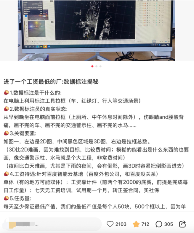 提到数据标注,很多人脑海里浮现的,仍是几年前那幅画面:二、三线城市的外包基地里,上百人排排坐,盯着屏幕给图像框选车辆、行人、红绿灯。这类任务门槛极低,无需培训,按件计酬,完成上千张标注收入勉强 200 元。