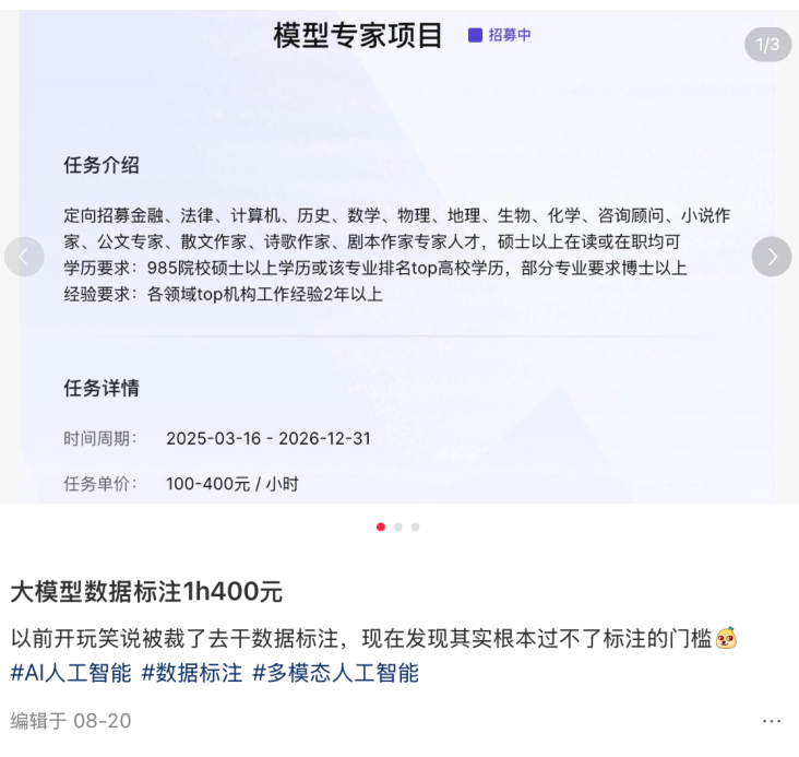 说到底,时薪过百买的不是时间,而是可规模化、可标准化、可被 AI 内化的高质量人类思维。而这张通往高薪的门票因此只发给那些既能深耕领域知识,又能跳出学术话语、持续迭代表达方式的人机协作型人才。