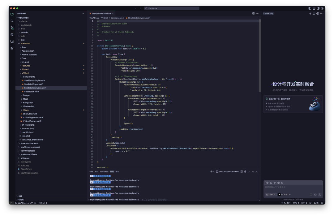 如今“全景新声”小程序稳定运行,他正攻坚复杂 iOS 版,每天与 APP“互殴”8 小时以上修复细节 Bug。CodeBuddy 检测显示,他开发的 APP 已达 11 万行代码,水平堪比中级程序员。半年前不敢想象的事,AI 帮他将音乐热爱具象成专属宇宙。