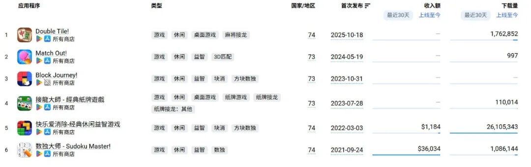 此外公司还在积极跟进其它热门休闲玩法,在 2025 年 10 月上线了一款麻将消除游戏「Double Tile」。