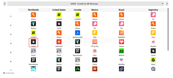2025 年,Cal AI 是数字健康领域 IAP 增速最快的应用之一|图源:Sensor Tower