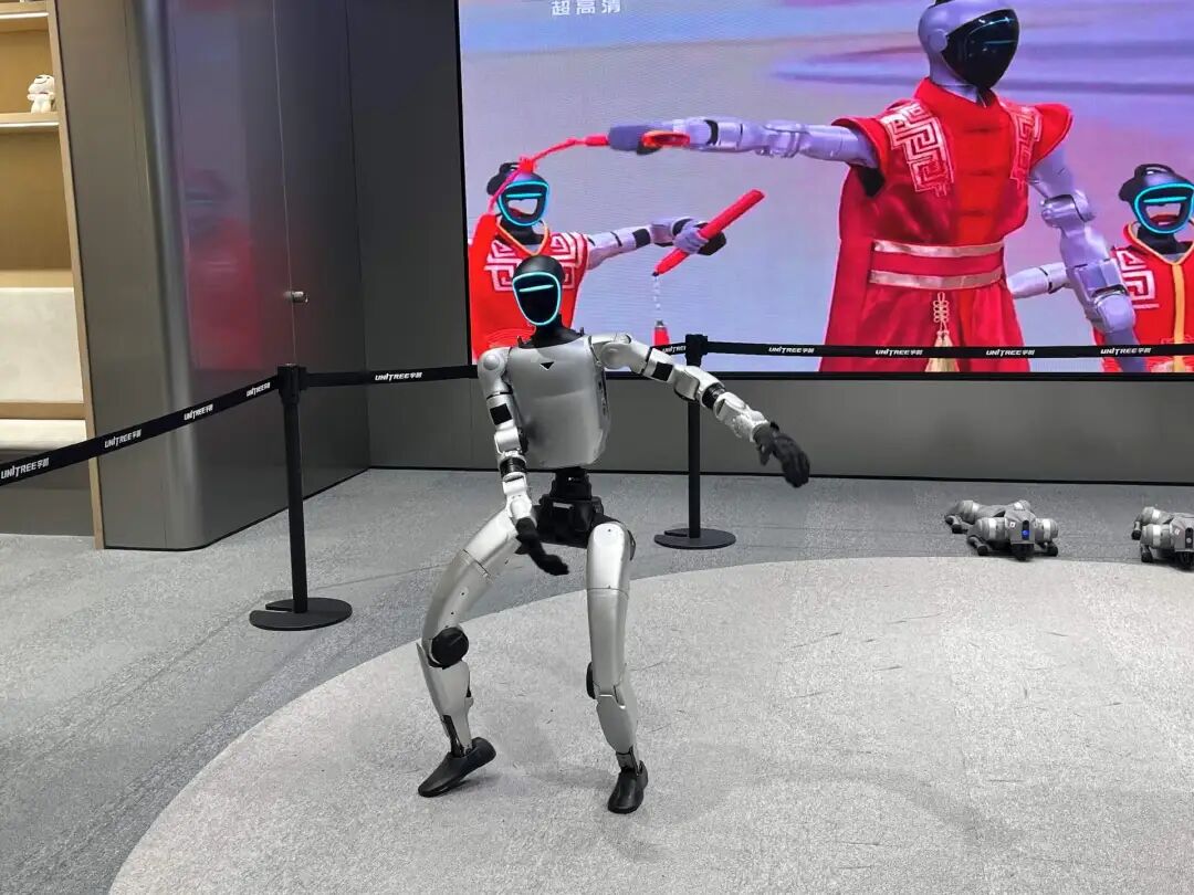 图注:京东 Mall,宇树机器人线下门店内正在表演的机器人。