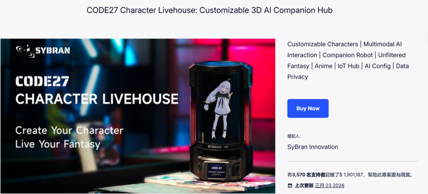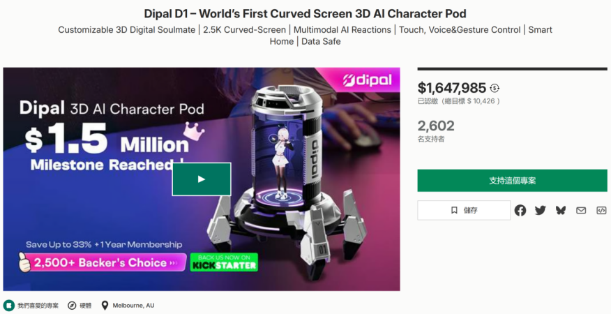 以形态类似、没有龙虾概念加持的单纯 AI 陪伴硬件「Dipal D1」和「CODE27 Character Livehouse」作为对比,「Dipal D1」用时 60 天获得 2602 名支持者,众筹约 162 万美元;CODE27 在 45 天内吸引 3570 名支持者,众筹约 190 万美元。