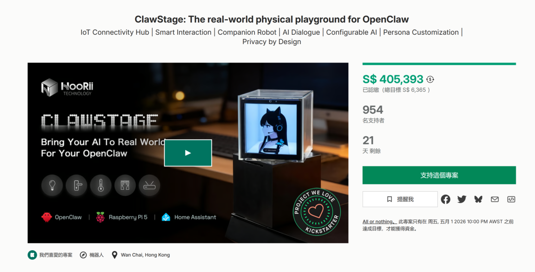这不是恐怖故事,也不是田螺姑娘的寓言故事,而是 3 月 17 日,HooRii 在 Kickstarter 上线的众筹项目「ClawStage」的宣传。它的定位是“OpenClaw 的现实世界游乐场”——用一个小方块,让 OpenClaw 来到现实世界,并能担任你的家庭管家。