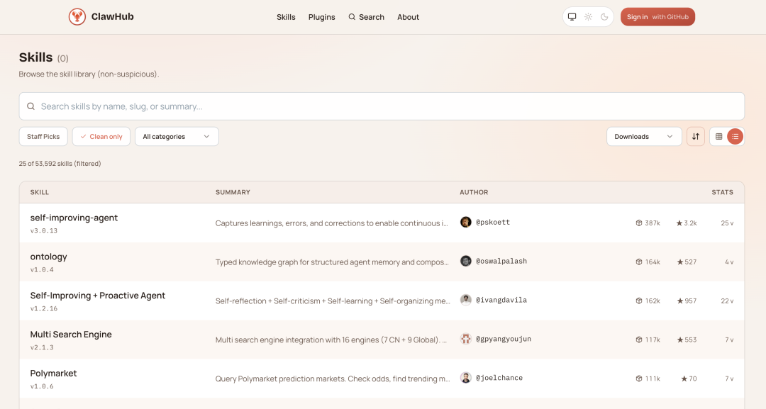 OpenClaw 的官方技能商店 ClawHub|图片来源:ClawHub