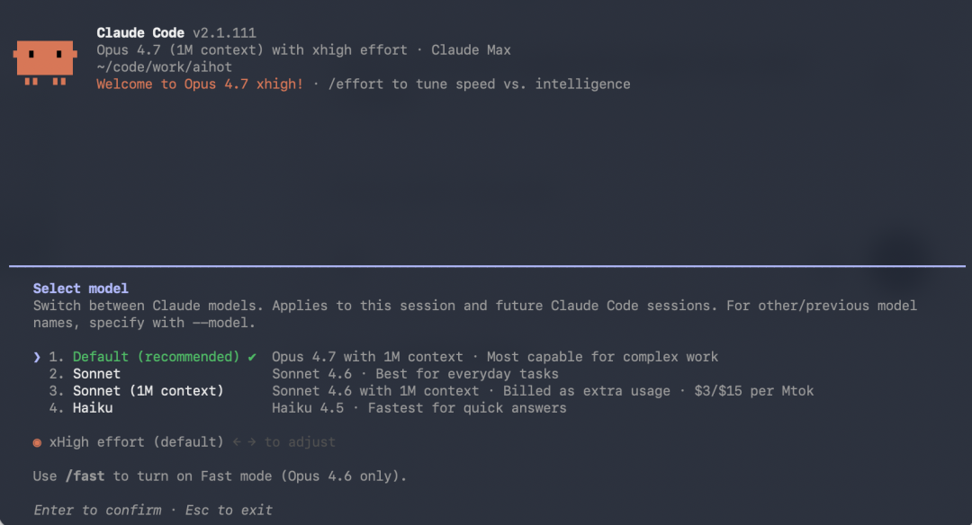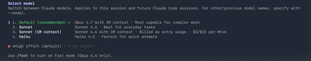 4.7 这次在 high 和 max 中间加了一档,叫 xhigh,extra high 的缩写。