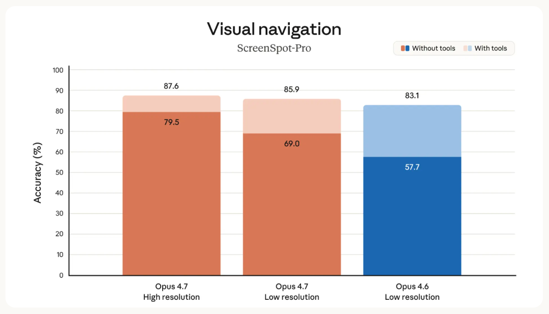 核心其实除了多模态能力的提升,也因为 4.7 支持的图片分辨率提升了。