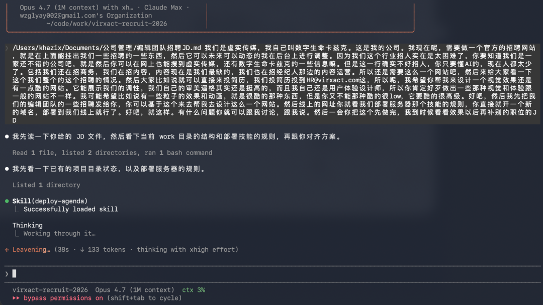 然后这一次 Opus 4.7,在我开发上面的招聘网站的时候,感觉看到了非常不好的倾向。