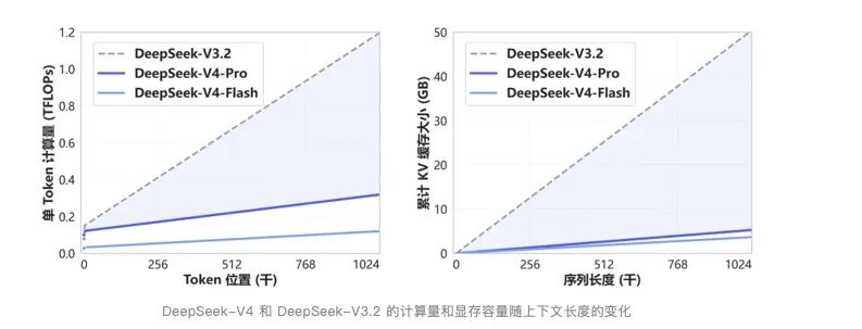 根据官宣资料显示,DeepSeek-V4 开创了一种全新的注意力机制,在 token 维度进行压缩,结合 DSA 稀疏注意力(DeepSeek Sparse Attention),实现了全球领先的长上下文能力,并且相比于传统方法大幅降低了对计算和显存的需求。