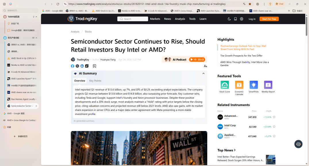 AMD 上涨的主要驱动力并非自身新闻,而是对手英特尔的强劲财报让市场相信,CPU 市场的复苏将惠及所有主要 CPU 制造商,而 AMD 作为英特尔的直接竞争对手,被视为最直接的受益者。