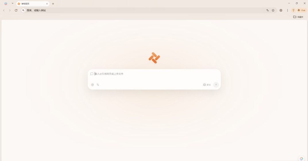 以入口功能为例,Tabbit 的新标签页没有任何推荐内容,只有一个对话框,你可以在对话框中直接输入网址,更可以直接@任何一个打开的网页、标签页组、收藏夹,甚至上传本地文件,要求 AI 帮你干活。