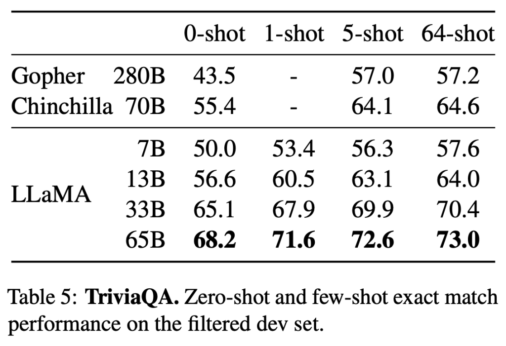 研究人员就闭卷答疑对 LLaMA 进行了测试,该基准测试的数据集包含阅读理解与问答的大规模语料集 TriviaQA 以及自然问题。