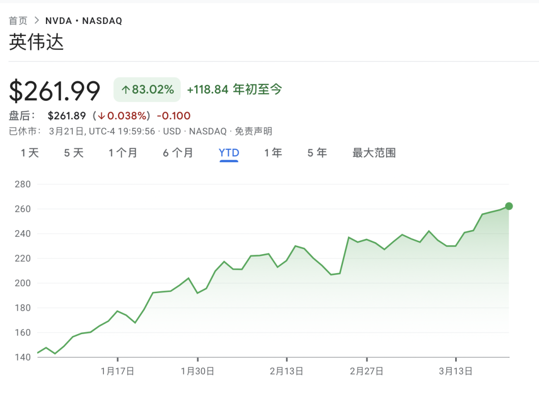 而去年年末至今,ChatGPT 爆火,也顺势拉动了英伟达的股价,年初至今就上涨 83%。