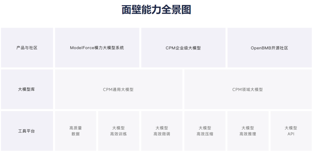 面壁智能专注于大模型加速与应用落地,联合 THUNLP 与智源研究院语言大模型技术创新中心发起了 OpenBMB 开源社区,推出了 CPM-Live 百亿中文大模型直播训练项目,以及大模型全流程加速平台 ModelForce。