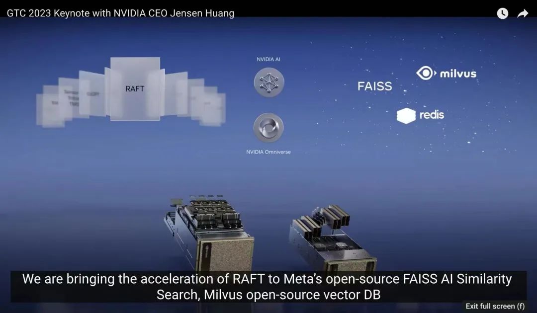 极客公园:3 月的 NVIDIA GTC 大会上,黄仁勋强调向量数据库对于大模型至关重要,还宣布了你们是 NVIDIA 的向量数据库的合作伙伴。这中间发生了什么故事?