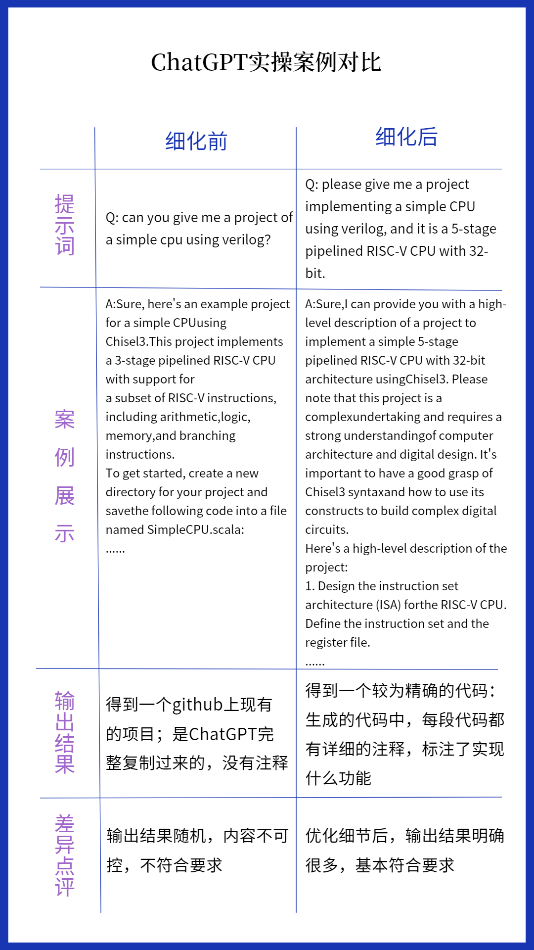例如,详细说明所需 CPU 框架、流水线,使其生产软件工程用类图;再用该类图生成一个程序框架;最后再提示、要求 ChatGPT 补充框架细节。