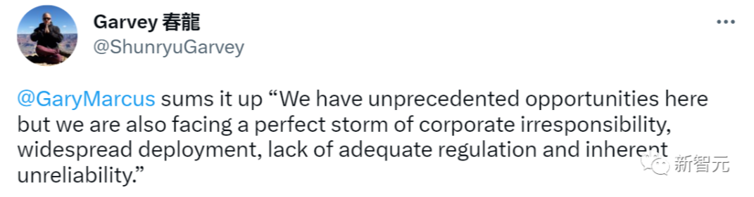 马库斯总结道:我们拥有前所未有的机会,但我们也面临着企业不负责任、广泛部署、缺乏适当监管和不可靠的可怕风险