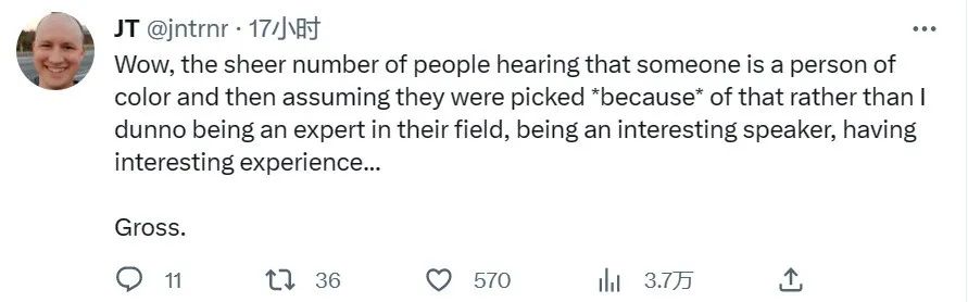 而我感受的不只是会议的组织者对于领域专家的冷漠,更是由于他直言不讳地批评 Rust 缺乏多样性才招致今天不受尊重的结局。