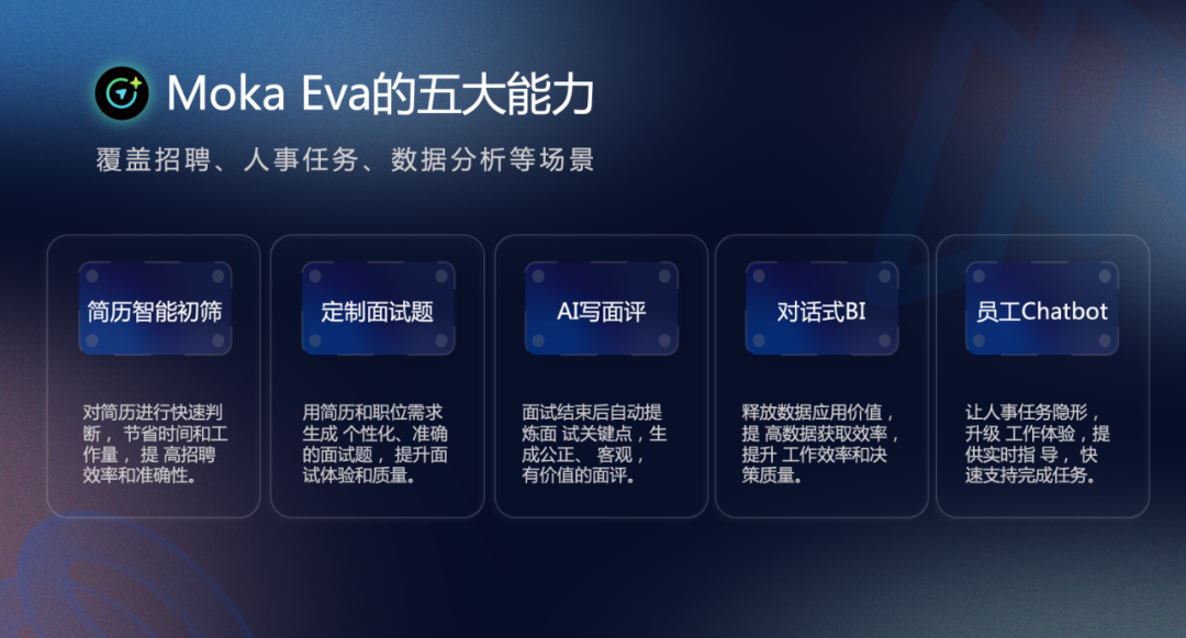 6 月,HR SaaS 平台 Moka 发布了基于大模型的新产品 Moka Eva。