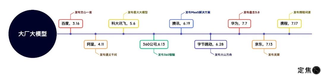 中国大厂大模型发布时间线 制图 / 定焦