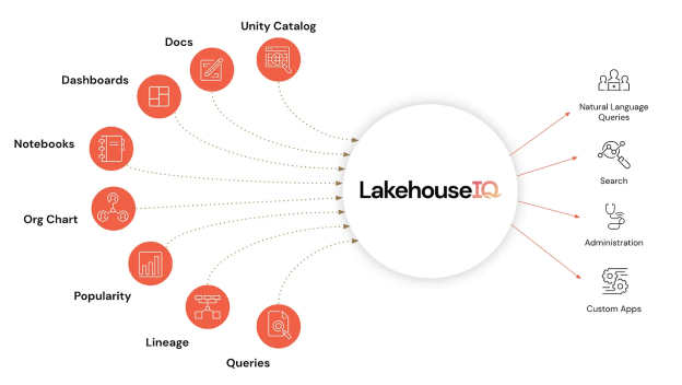 1)LakehouseIQ:基于 LLM 的自然语言接口,用于搜索和查询数据,并强大地理解客户的数据、内部行话和使用模式,以了解客户的架构、文档、查询、系统等。