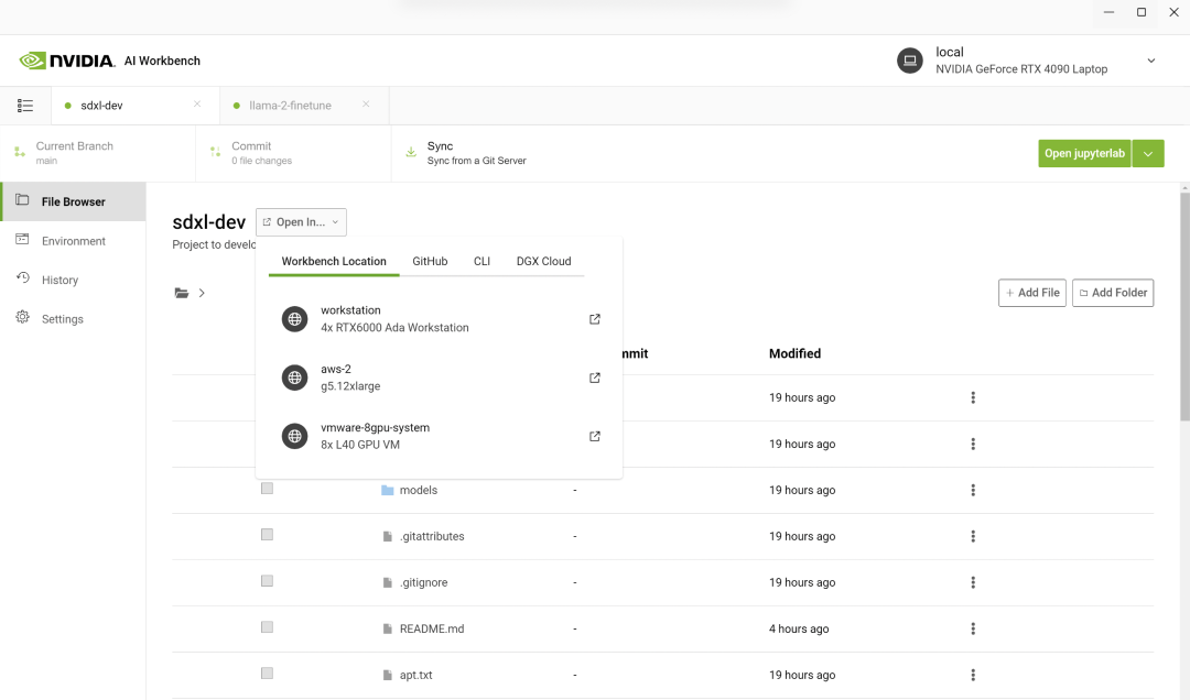 AI Workbench 与 GitHub、NVIDIA NGC、Hugging Face 等服务集成,开发者可以使用 JupyterLab 和 VS Code 等工具,并在不同平台和基础设施上进行开发。