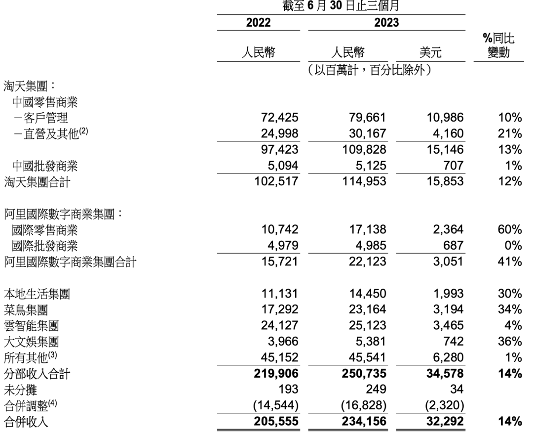 这份财报处处体现阿里已经“分家”——不仅对原有业务进行重新分类,各项数据的口径也与上一季度完全不同,一个由淘天、阿里国际数字商业、本地生活、菜鸟、云智能、大文娱和其他业务组成的 6+N 集团架构的新阿里也由此出现在大家面前。