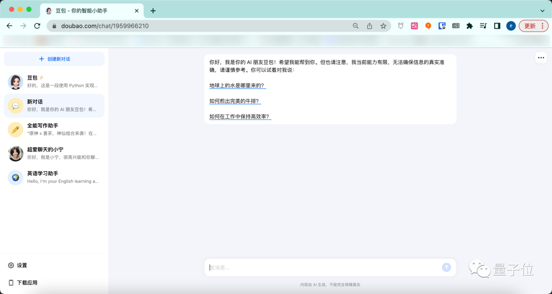 另外,“豆包”项目组的盆友向我们透露,豆包尚处于早期开发验证阶段。测试期还存在较多局限,生成的内容也可能不准确,欢迎测试用户们多提意见多反馈。