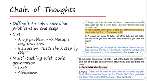 但是有看法认为,这可能是因为训练大模型一方面用了文本的数据,另外一方面用了代码数据,代码数据本身会有很好的逻辑性以及结构信息,在文本数据和代码数据的联合训练的过程中,大模型就掌握了一些逻辑和结构特性。