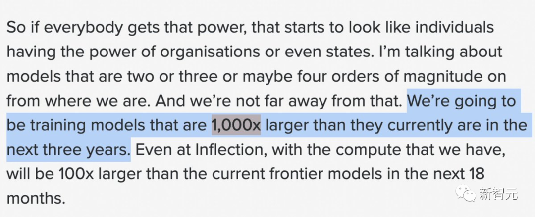 即便是 Inflection AI,也能在未来 18 个月内获得比现在最前沿的模型大 100 倍的计算能力。